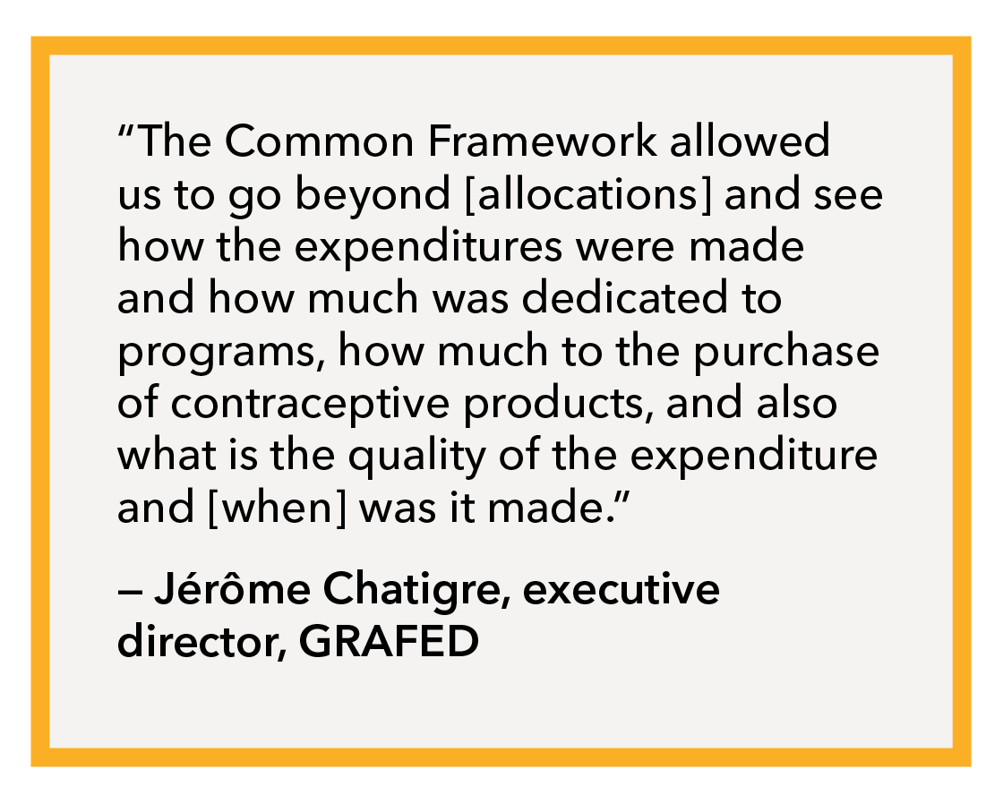To address this challenge, for the past four years, CSOs in Benin, Burkina Faso, Côte d’Ivoire, Malawi, Tanzania, Uganda and Zambia have used the Common Framework for Tracking Government Spending on Family Planning. This approach holds governments accountable for meeting their commitments to fund FP supplies and services by increasing and spending the domestic resources they’ve allocated while improving the transparency of budget data.